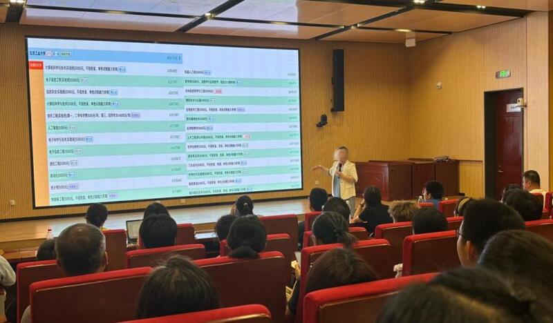 大屏幕前,“知己”——位次排名、意向专业;“知彼”——招生章程、数据、计划;模拟方案关注要点……轮番切换,主讲老师侃侃而谈。“专业组内专业的增与减,是家长一定要研读弄清的事情。很多985、211的大学会拿出两个好专业,去拉动整个专业组。假如一个专业组,原本是计算机加通信,今年加入了环境工程,你能不能光盯着自己想学的专业?”