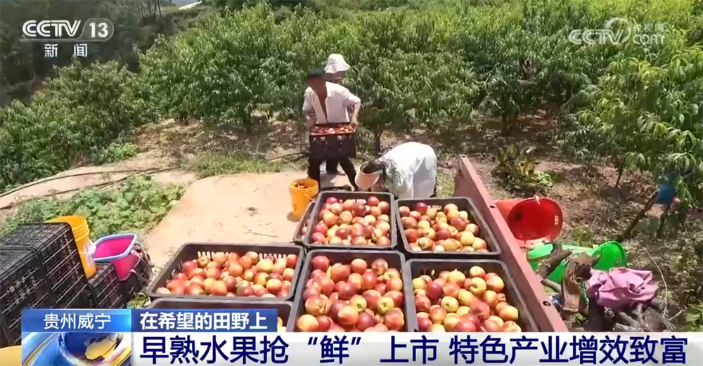 央视网消息:在贵州省毕节市威宁县,多地种植的车厘子和油桃迎来丰收季。当地充分利用强光照、昼夜温差大的气候优势,大力发展早熟特色水果产业,错峰上市销售,促进农户增收。