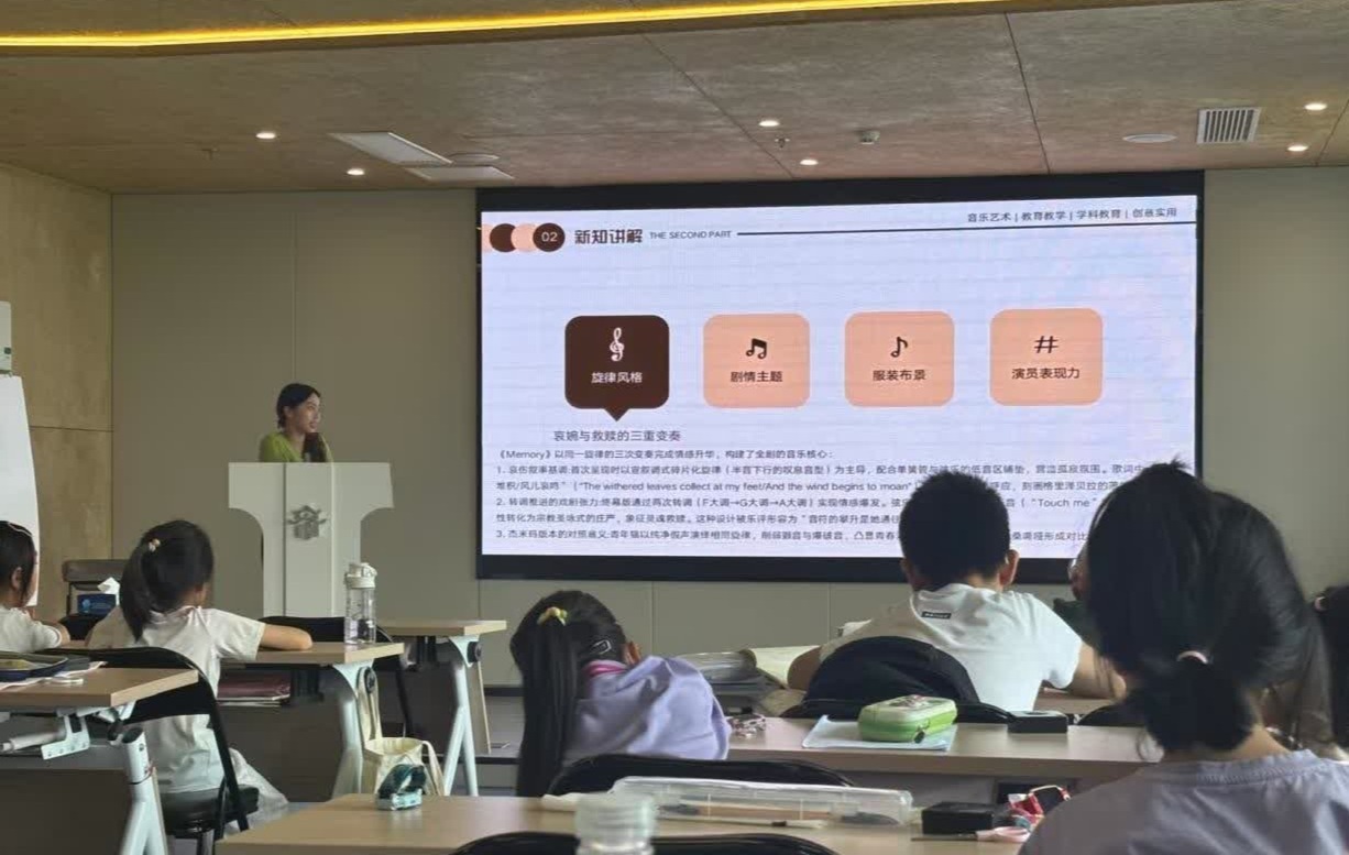这是南京审计大学泽园书院“爱心暑托班”项目的青年志愿者蔡昀霏同学带着社区20多名小学生一起上音乐课。课堂上小蔡同学细致讲解,认真示范,小朋友们踊跃互动,一展歌喉,教室里回荡的欢声笑语格外动人。在志愿者满满的关爱与陪伴中,小朋友们享受着暑假旅程。