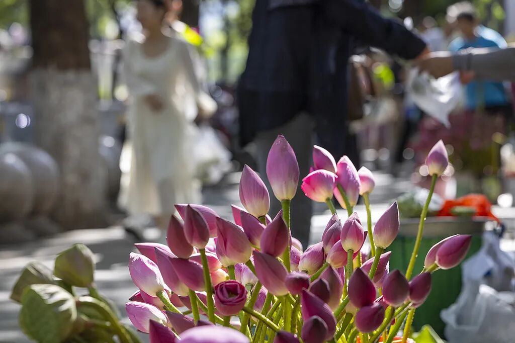 而今,白塔西路的荷花市集,川流不息的人群流淌着江南市井生活的诗意清雅。