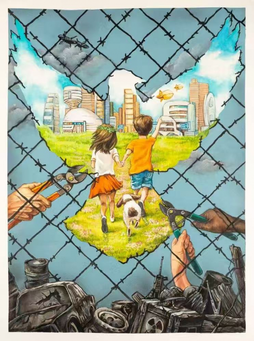 王姝雯在获奖感言中说道:“我的画笔很小,画不出全世界的样子,但我相信,每个小朋友的画笔凑在一起,就能拼出和平的模样。”这份来自中国少女的真诚与创意,通过艺术的力量传递出响亮的和平之声。