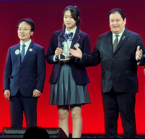 本次大赛吸引了全球68个国家和地区的近70万青少年参与。王姝雯的作品以极具想象力的构思和细腻的艺术表达,生动诠释了“和平无止境”的主题,让现场来自210多个国家和地区的万余名来宾深切感受到了画作中传递的人类共同愿景。颁奖典礼上,当王姝雯与海滨美校校长朱海滨一同登上领奖台时,全场响起雷鸣般的掌声,向这位中国少女致以敬意。