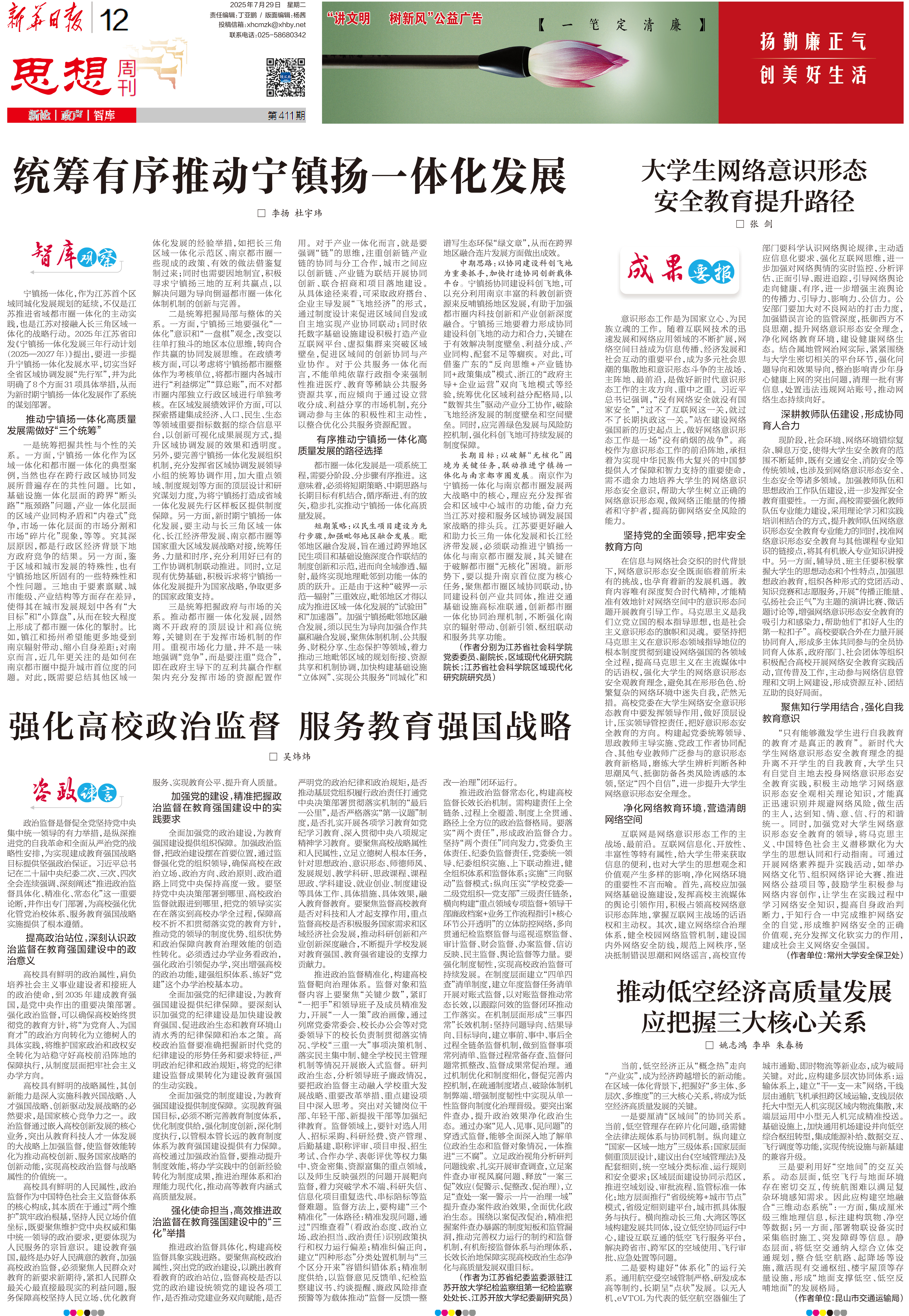 “只有能够激发学生进行自我教育的教育才是真正的教育”。新时代大学生网络意识形态安全教育理念的提升离不开学生的自我教育,大学生只有自觉自主地去投身网络意识形态安全教育实践,积极主动地学习网络意识形态安全观相关理论知识,才能真正迅速识别并规避网络风险,做生活的主人,达到知、情、意、信、行的和谐统一。同时,加强党对大学生网络意识形态安全教育的领导,将马克思主义、中国特色社会主义潜移默化为大学生的思想认同和行动指南。可通过开展网络素养提升实践活动,如举办网络文化节、组织网络评论大赛、推进网络公益项目等,鼓励学生积极参与网络内容创作,让学生在实践过程中学习网络安全知识,提高自身政治判断力,于知行合一中完成维护网络安全的自觉,形成维护网络安全的正确价值观,充分发挥文化软实力的作用,建成社会主义网络安全强国。