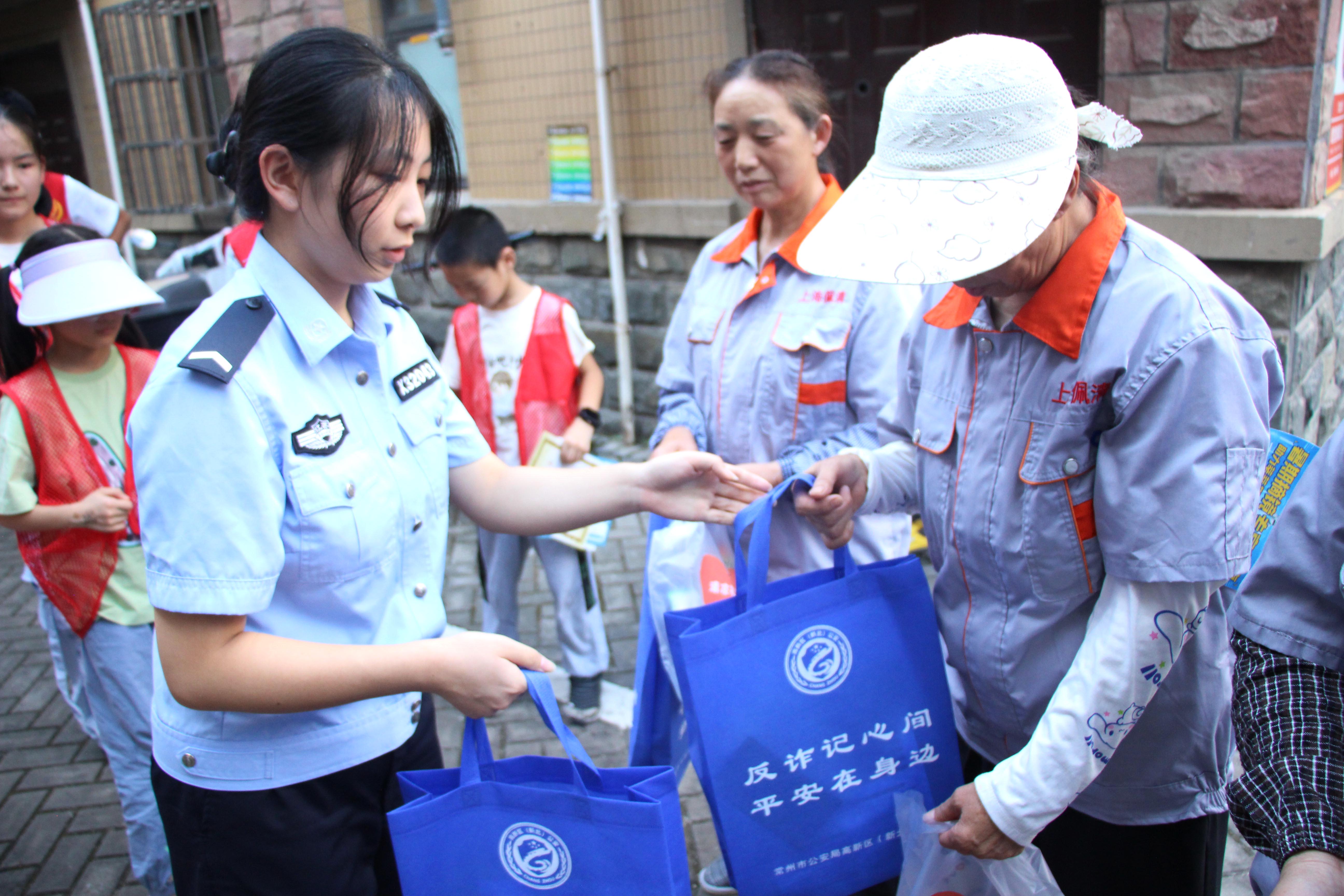 “平时在外面干活,经常能看到警察同志和社区的人在走街串巷,今天这么热的天,还带着孩子们一起来送‘温暖’,说实在的,有人惦记着的感觉真好。”常州某社区保洁刘阿姨激动地说道。