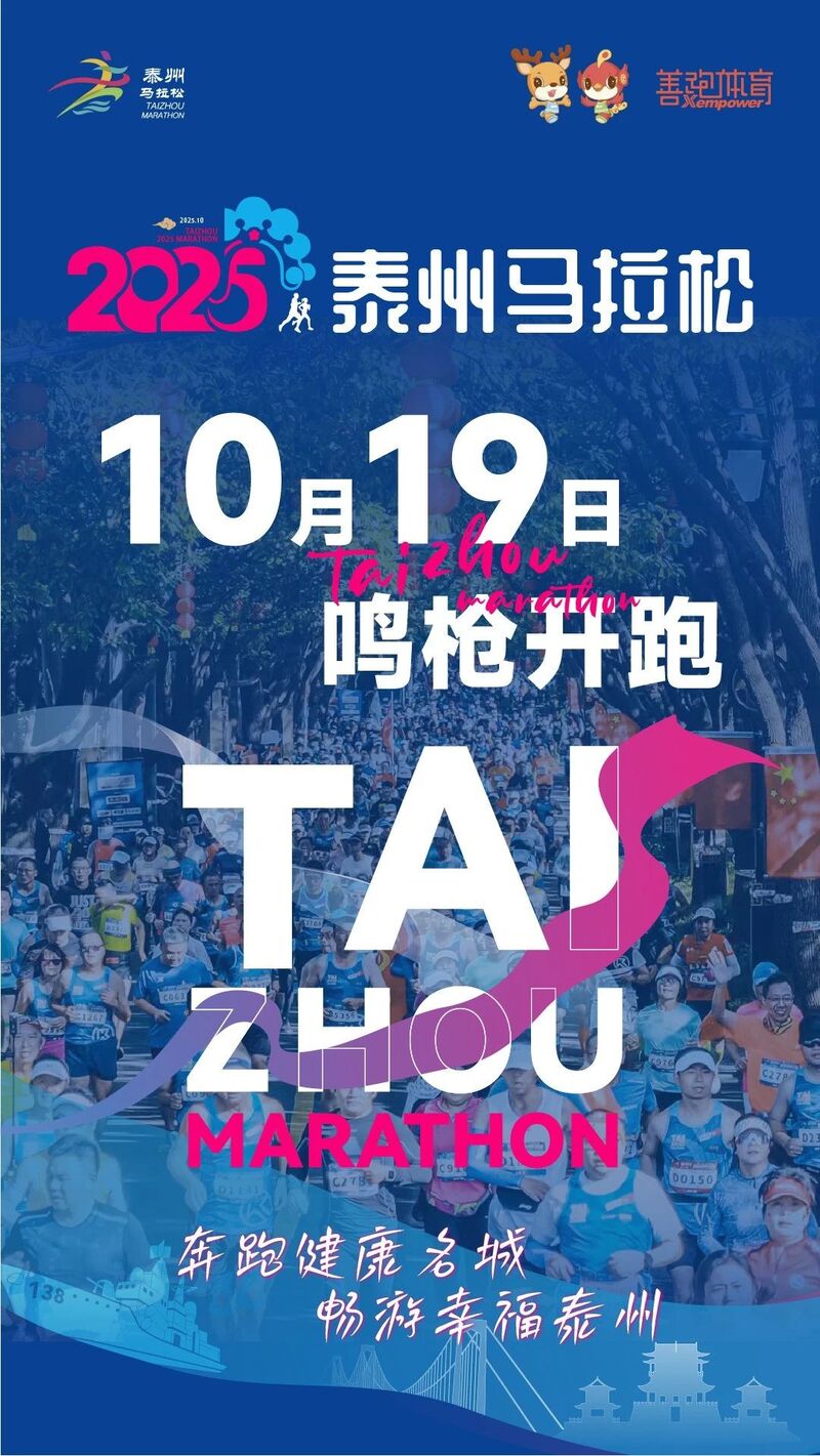 交汇点讯 “奔跑健康名城,畅游幸福泰州。”刚刚,2025泰州马拉松暨大运河马拉松系列赛(泰州站)开跑时间正式确定,将于10月19日开赛。赛事报名,将于近期启动。