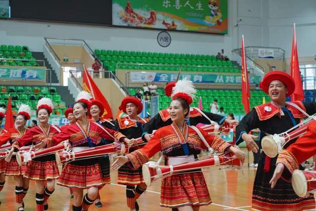 百人健身舞《健康一起走》:融合现代健身操与本土民俗元素,以整齐划一、充满感染力的表演,向全市发出“全民健身、健康同行”的积极号召。