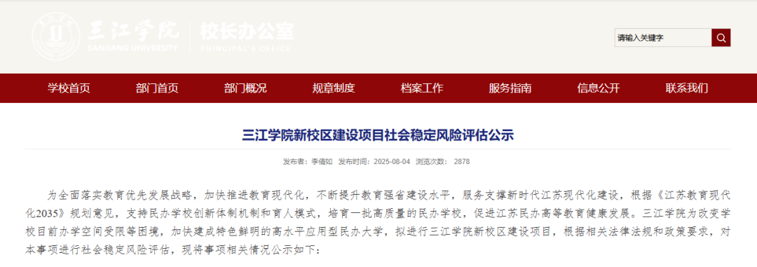 2025年8月发布的相关公示表明,三江学院离新校区建设又近了一步。