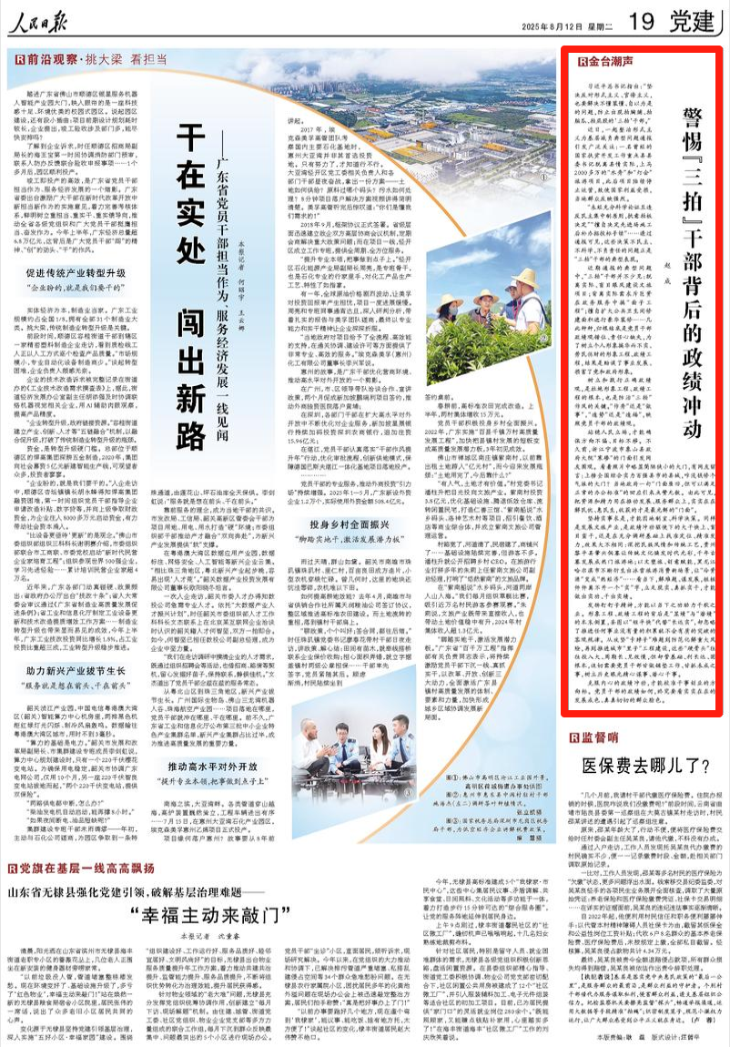 8月12日出版的《人民日报》刊发文章《警惕“三拍”干部背后的政绩冲动》。