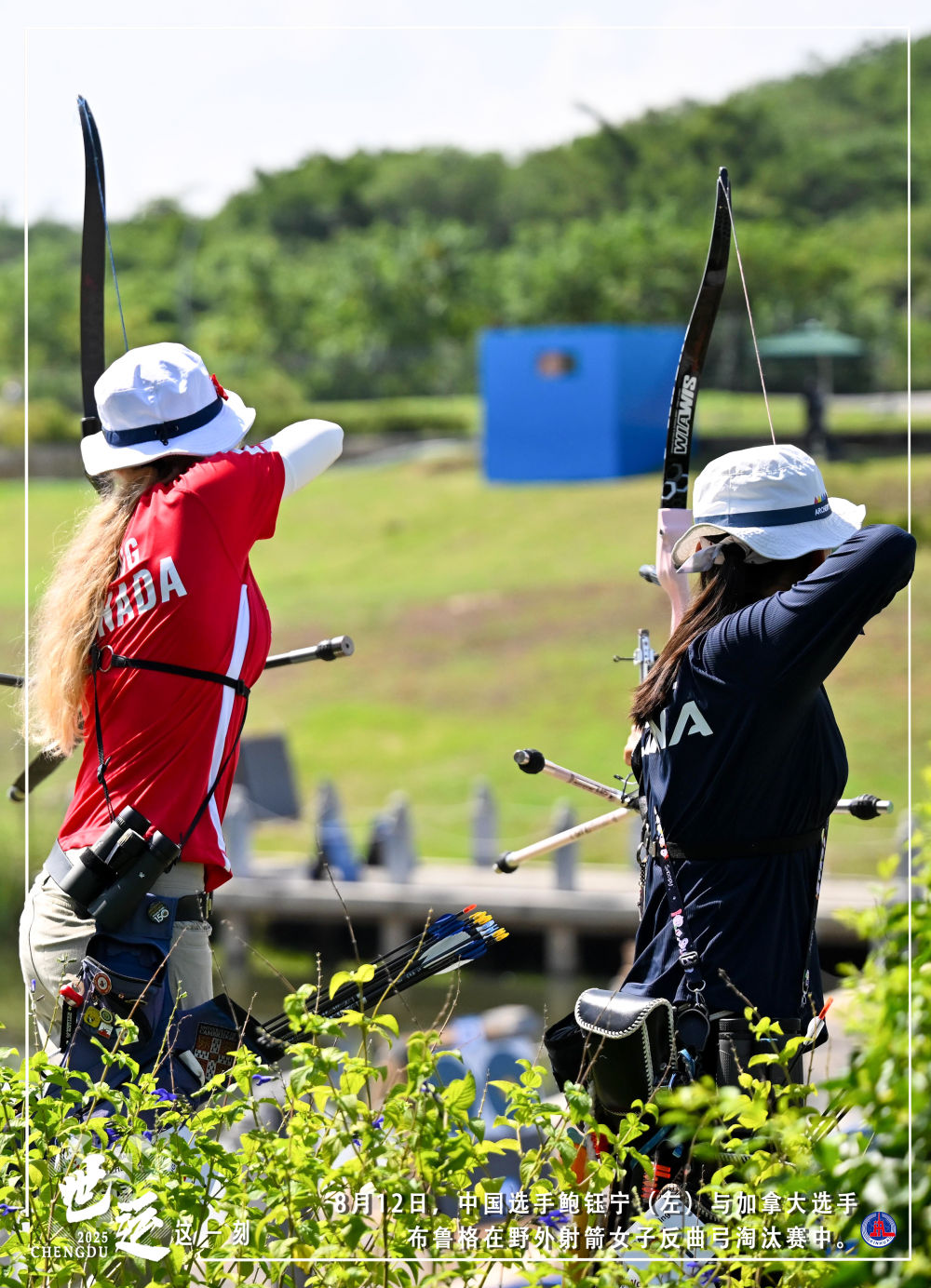 运动员瞄准靶心时眼前是潋滟湖光