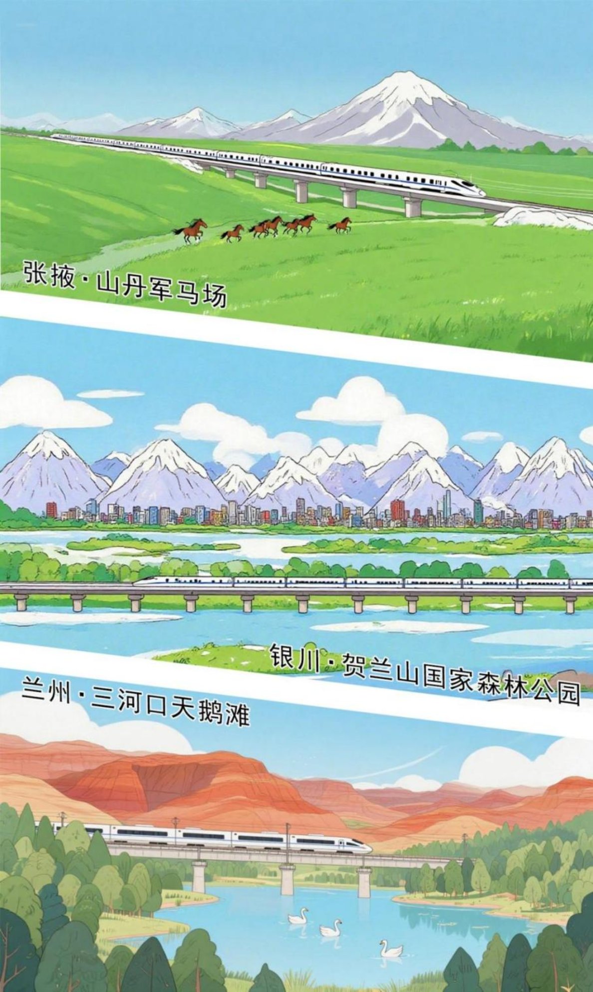 西北地区建设“绿色铁路”的实践,是“两山”理念在西北大地落地生根的生动缩影。甘肃铁投集团在建设银兰高铁期间,环水保投资约8.6亿元,实现了绿化576公顷,林草植被恢复率达94.05%,生态建设成果显著;川青铁路坚持绿色施工,在选线、建设和运营中尽量减少对生态环境的影响,筑起一条绿色生态的高原“天路”;西成高铁为守护朱鹮安全,在洋县段高铁路基两侧安装特制防护网,紧紧筑牢生态屏障……铁路建设秉持绿色发展理念,不仅助力列车在铁道线上越行越快、越行越稳、越行越远,也为沿线生态环境保护写下生动注脚。