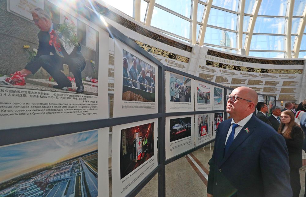 白俄罗斯第一副总理斯诺普科夫出席开幕式并致辞。他表示,白俄罗斯和中国为世界反法西斯战争胜利付出巨大代价。在历史亲历者数量不断减少的当下,举办图片展尤为重要,以铭记历史、讲述历史真相,反对歪曲历史、粉饰罪犯、玷污英烈。