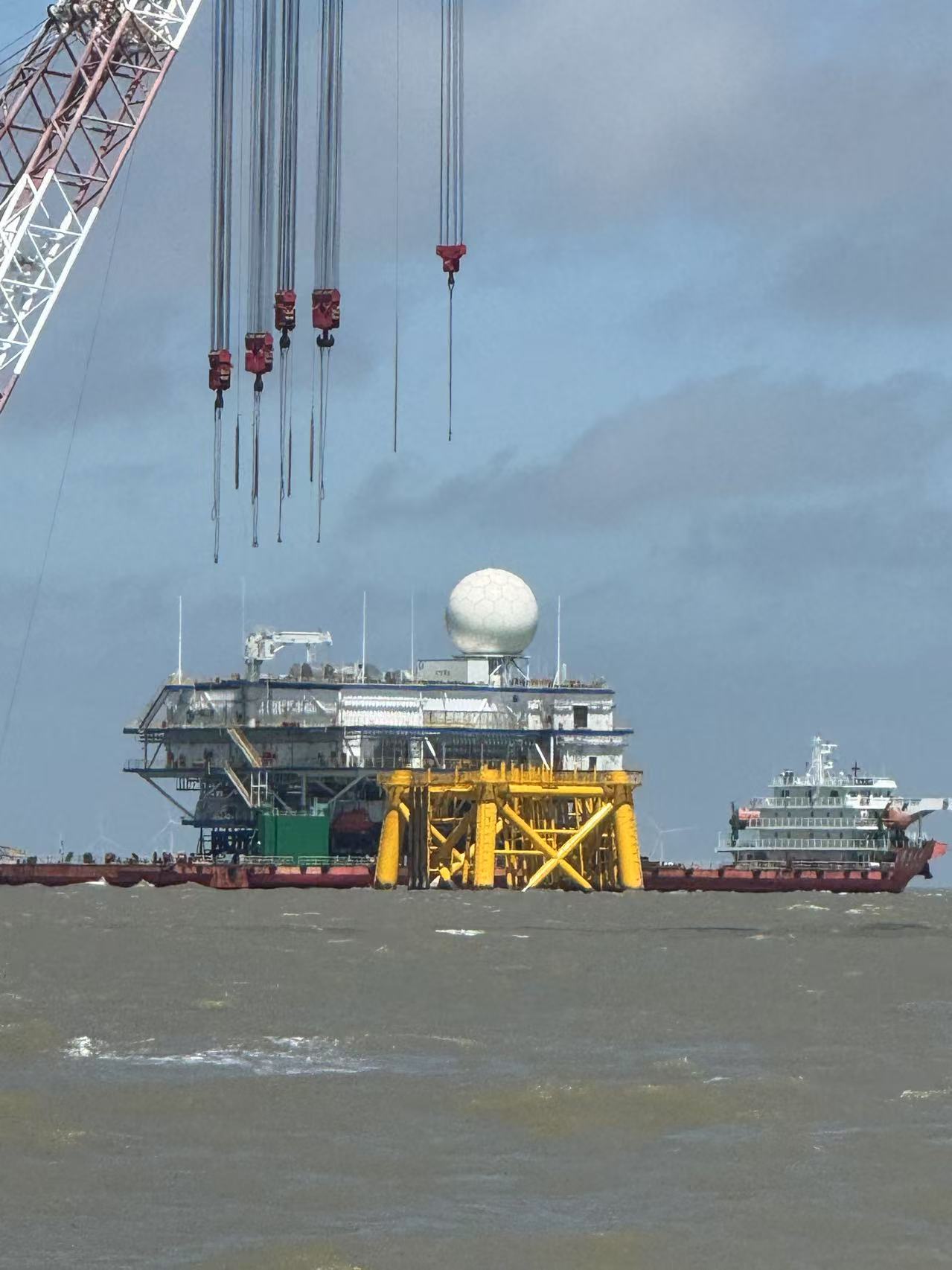交汇点讯 8月16日凌晨4时30分,随着H9海上升压站上部组块精准落于导管架基础上,我国首个搭载气象雷达的海上升压站在江苏大丰海域安装完成,其能有效填补江苏海上气象监测空白,显著提升海上灾害性天气的精密监测能力。