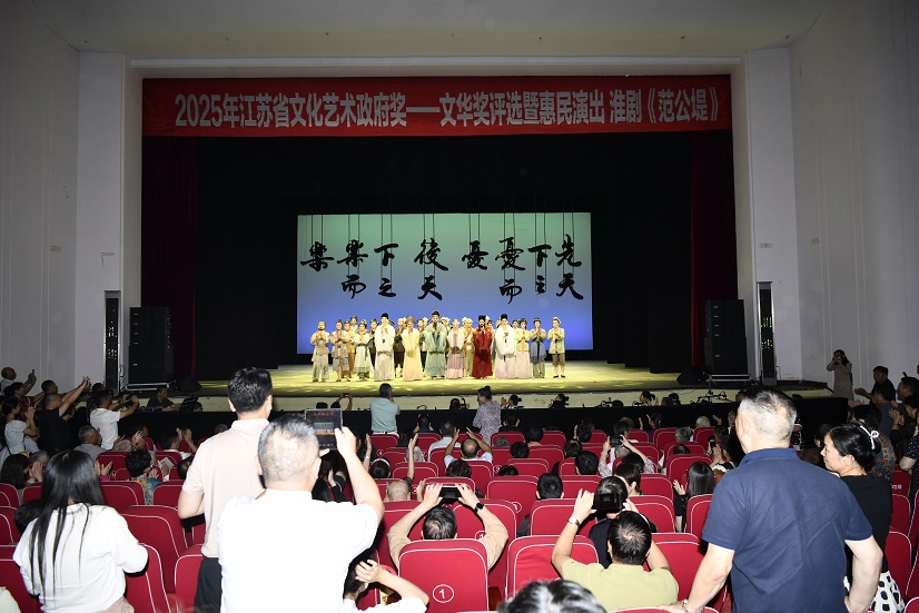 当范仲淹在台上挥袖高歌“先天下之忧而忧”时,台下观众仿佛被带入千年之前的海涛堤坝之间,许多人已热泪盈眶。8月20日晚,由江苏省淮剧团创排的大型新编历史淮剧《范公堤》,作为2025年江苏省文化艺术政府奖——文华奖参评剧目亮相淮安人民大会堂,以地道淮腔淮韵再现北宋名臣范仲淹修筑捍海堰、守护百姓的历史壮举。