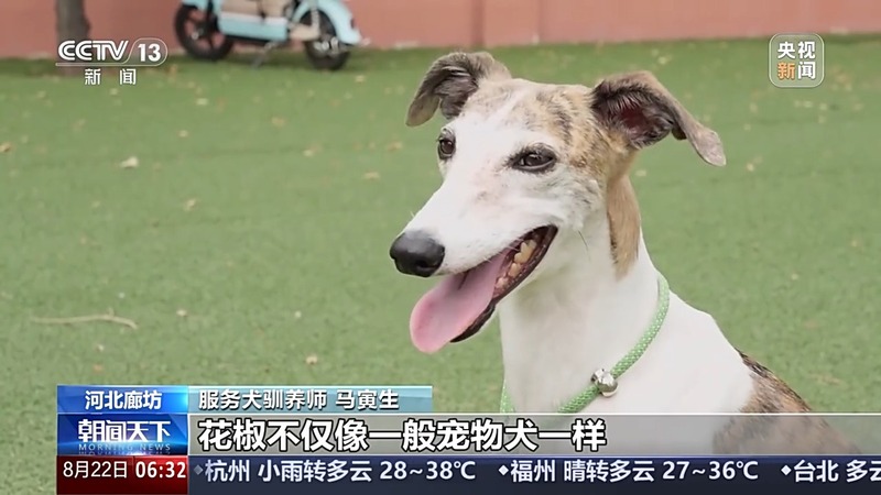 服务犬驯养师 马寅生:我们每天除了要教它一些基本服从,比如坐、卧、等待、随行,还会加入一些社会化训练、脱敏训练、接触安全训练,还有情绪分辨的训练以及情绪干扰的训练。