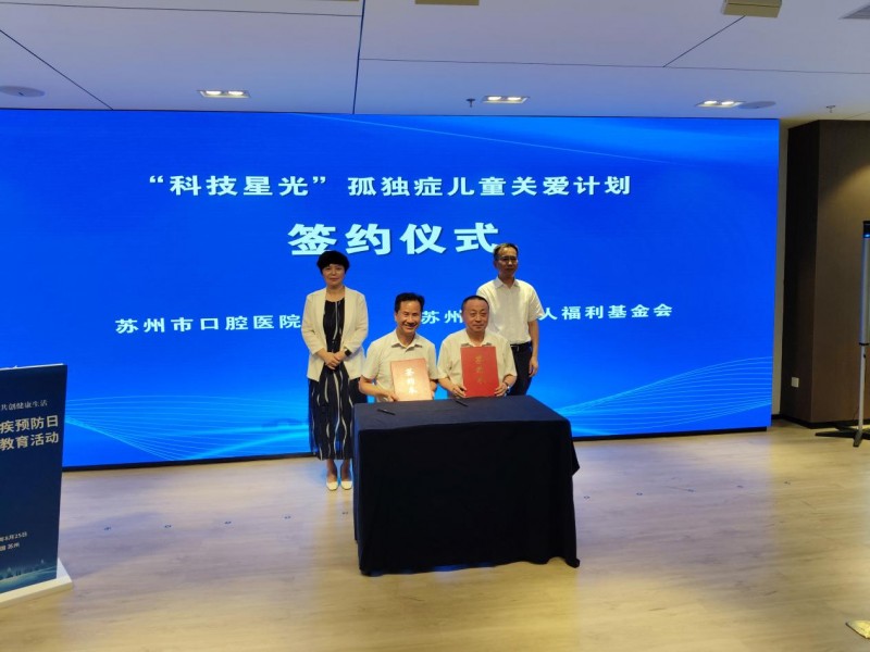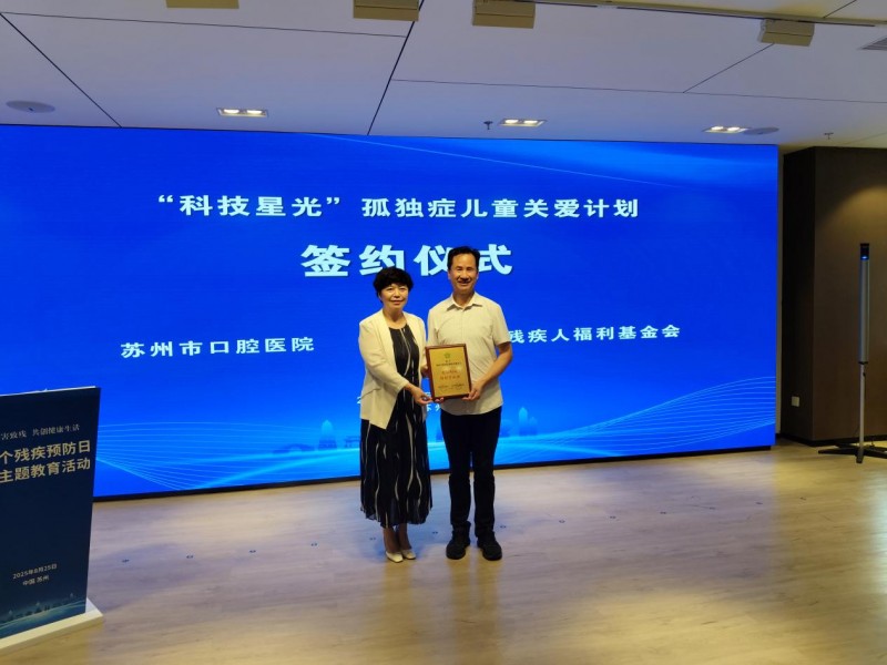 活动中,苏州市口腔医院与苏州市残疾人福利基金会启动“科技星光”计划,双方将在科技助残、关爱孤独症儿童及家庭方面开展深度合作,并签订战略合作协议。苏州市口腔医院将自2025年起,连续三年每年向苏州市残疾人福利基金会捐赠资金20万元。
