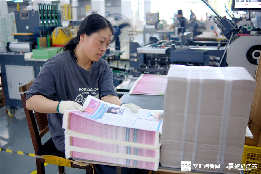 8月25日,承接部分江苏省和南通市中小学教材教辅900万余册印刷任务的南通韬奋印刷有限公司目前全力进行教辅材料印刷工作,确保在开学之际能够“课前到书,人手一册”。徐培钦 摄 视觉江苏网供图