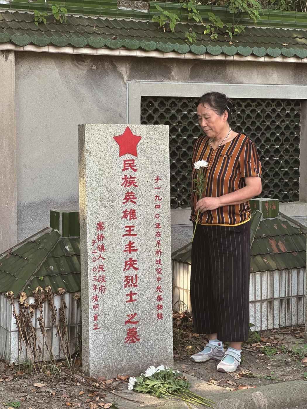 自那天起,英雄的故事就在吊桥村民中口口相传。村民朱秀春说,老一辈常讲起吊桥村突围战,新四军战士以命相博、守护村庄。“我母亲当时就在村子里。”她说,等枪炮声渐息,母亲才敢走出屋子,却看到王丰庆烈士倒在了离屋不远的地方。“他头部中弹,身上挨了数不清的刺伤,衣服的棉絮飘散一地。”朱秀春复述着母亲的记忆,说母亲临终前反复交代,如果烈士家人寻来,一定要把王丰庆牺牲的场景告诉他们,并代她说声谢谢。