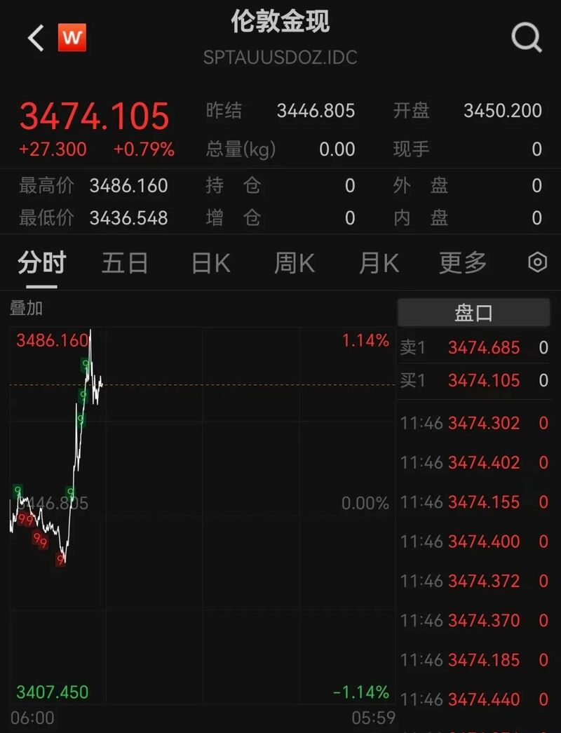 9月1日,国际金价上涨显著,盘中,现货黄金突破3470美元/盎司,创4月22日以来新高,COMEX黄金主力合约同步上涨。截至11:46,现货黄金报3474.1美元/盎司,COMEX黄金主力合约报3542.9美元/盎司。