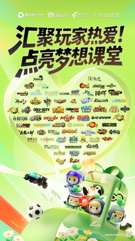 今年“久久公益节”期间,腾讯成长守护携手腾讯公益、超核玩家共同发起“游戏礼包捐”公益活动,联动《地下城与勇士》端手游、《火影忍者》手游、《QQ飞车》端手游、《FC足球世界》等69款热门游戏共同参与,让玩家在线上更简单、更好玩的参与到助力乡村教育公平的公益项目中。