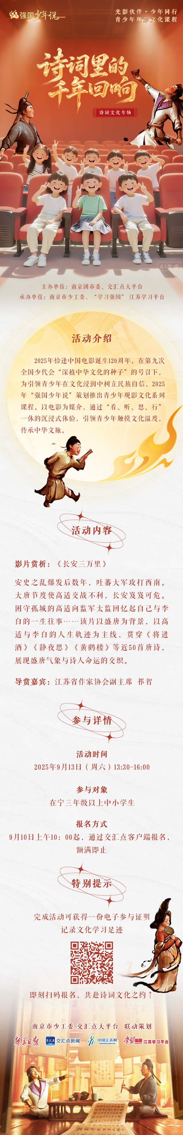 当盛唐诗意漫进少年心房,会闪耀怎样的文化星光?2025年“强国少年说”之“光影伙伴・少年同行”诗词文化专场来啦!