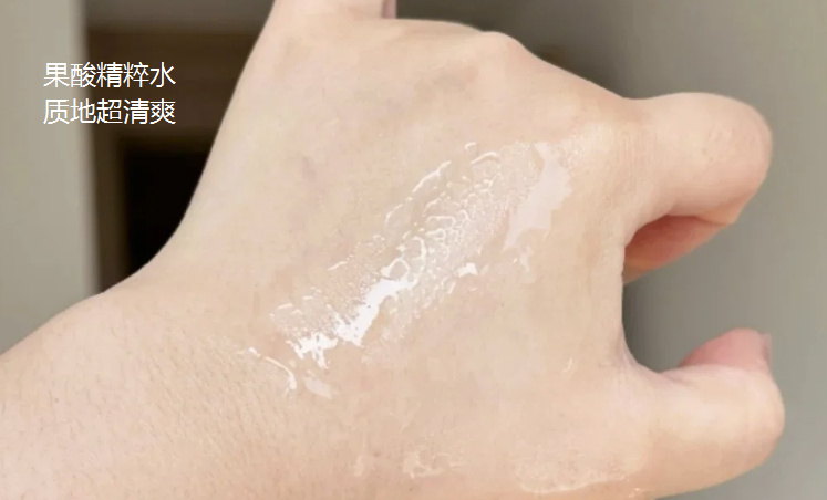 很适合油痘肌肤质,果酸精粹水是三重果酸复配,比单一酸更温和高效,还添加了90%的大牌同款修护精粹,敏皮用也无需建立耐受!精准拿捏油光 痘痘 闭口 粉刺~