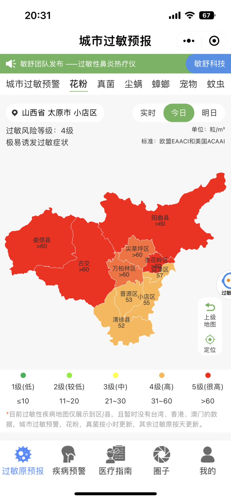 且当天花粉过敏风险较高