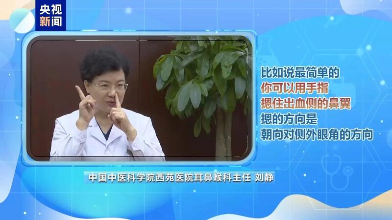 可以用手指按住出血侧的鼻翼,方向是朝向对侧外眼角的方向,可以止住大部分的鼻出血。