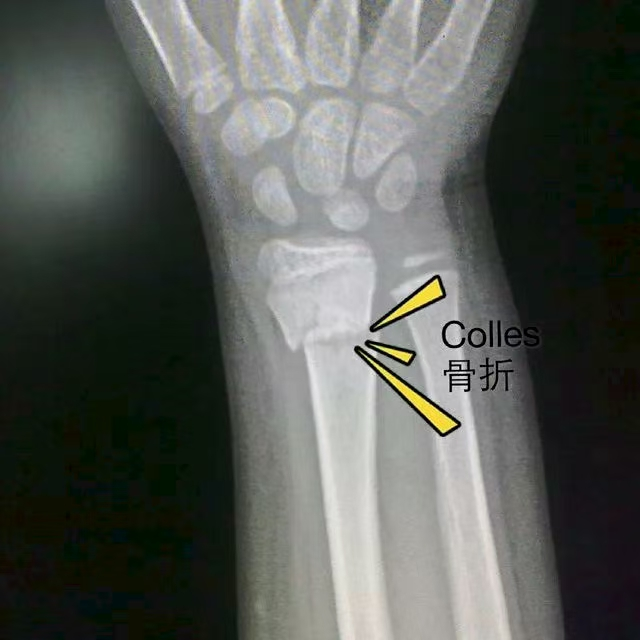 如何发生:多见于摔倒时,身体倒地瞬间用手掌撑地,导致暴力通过手掌传导至腕部,引起桡骨骨折。