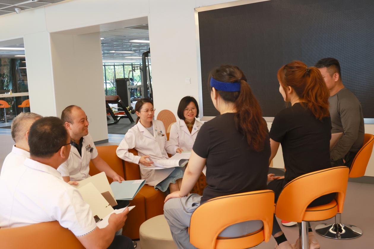 中心汇聚了一支实力强劲的跨学科专业团队:由临床医学高级职称专家和博士组成的医疗专家团队,为市民提供一对一的精准医学评估和运动风险评估,从根源上杜绝运动损伤,保障健康方案安全有效;经验丰富的资深健身教练团队,凭借专业的指导技能,确保运动方案正确执行,达到最佳运动效果。此外,中心还建立了动态调整机制,定期进行开展体测评估,依据市民身体的实时反馈,灵活调整健康管理策略,实现健康管理的科学化与精准化。