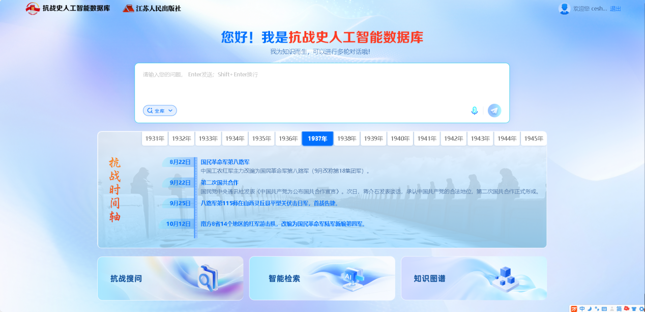 同方知网数字科技有限公司总经理张宏伟介绍,抗战史人工智能数据库的建成,是人工智能与出版深度融合的一次重要突破。它绝非简单的史料数字化,而是以人工智能技术为核心,对海量历史资源进行深度挖掘、智能关联和知识重构的成果。数据库的上线发布,标志着抗战史研究从传统文献检索模式迈向问答式知识服务新范式。