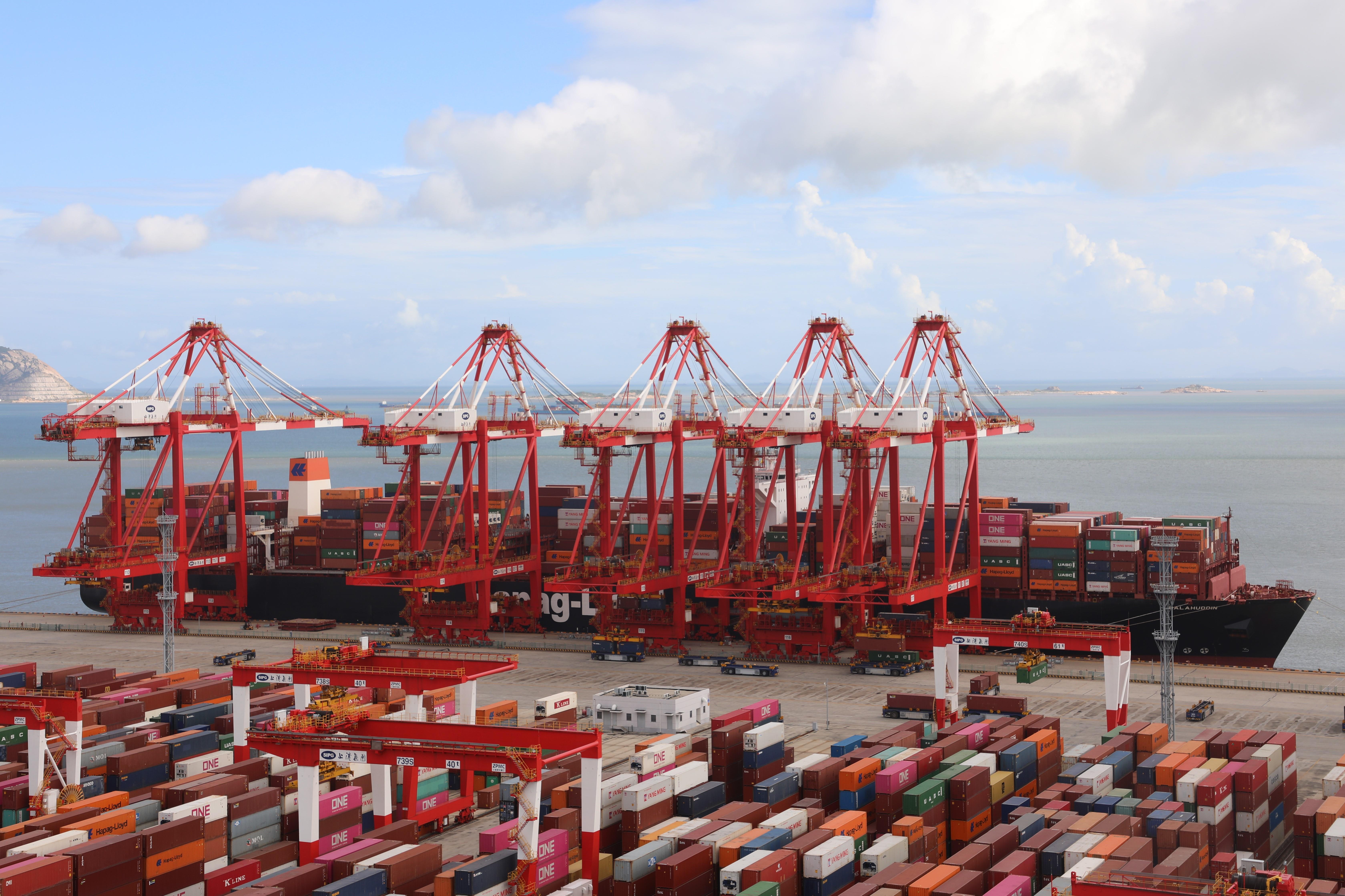 在洋山深水港,“联动接卸”模式让外贸货物可在洋山办结海关手续,直达目的港提离,据测算每个标箱可节省物流成本约200元,降低了外贸企业综合物流成本。