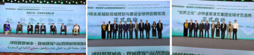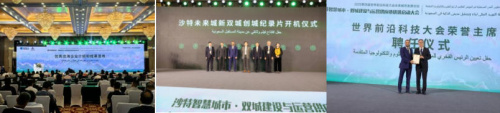 大会议程紧凑且丰富,分为两个阶段。第一阶段由主持人精彩开场并详细介绍嘉宾,随后邀请中外领导及嘉宾致辞。各位嘉宾在致辞中高度评价了中沙合作的光明前景,着重强调了科技在推动城市发展中的关键作用,纷纷表达了对沙特未来城项目的坚定信心和热切期待。第二阶段举行了沙特未来城新双城规划与建设全球供应链优选等项目启动仪式以及世界前沿科技大会荣誉主席聘请仪式,这一激动人心的时刻将大会氛围推向高潮,随后的“未来城市发展论坛”上,与会嘉宾围绕未来城市的发展趋势、技术创新、合作模式等议题展开了深入的讨论和交流,分享了各自宝贵的观点和丰富的经验。最后,大会还举行了优秀出海企业介绍和成果发布。