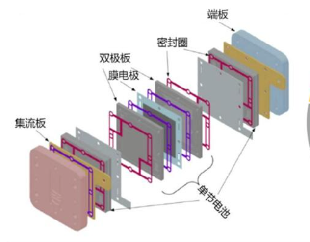 根据国泰君安证券研究:作为氢能源产业链上游,发电用燃料电池主要采用质子交换膜燃料电池(PEMFC),而电堆则是氢燃料电池的主体部分,在电池成本中占比最大,主要由质子交换膜、电催化剂、气体扩散层、双极板等零件组成。