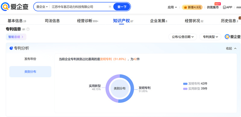 氢谷动力前身是苏州中车氢能动力技术有限公司,由中国中车与张家港政府联合成立,是中国中车在氢能领域唯一平台公司,注册资本达18亿元。该公司已获得81项专利,其中发明专利数量过半。公司的核心技术为燃料电池阳极排氮控制技术,该技术通过二级分水,减少排氮时间,提高氢气利用率,有助于保持氢气压力的稳定。