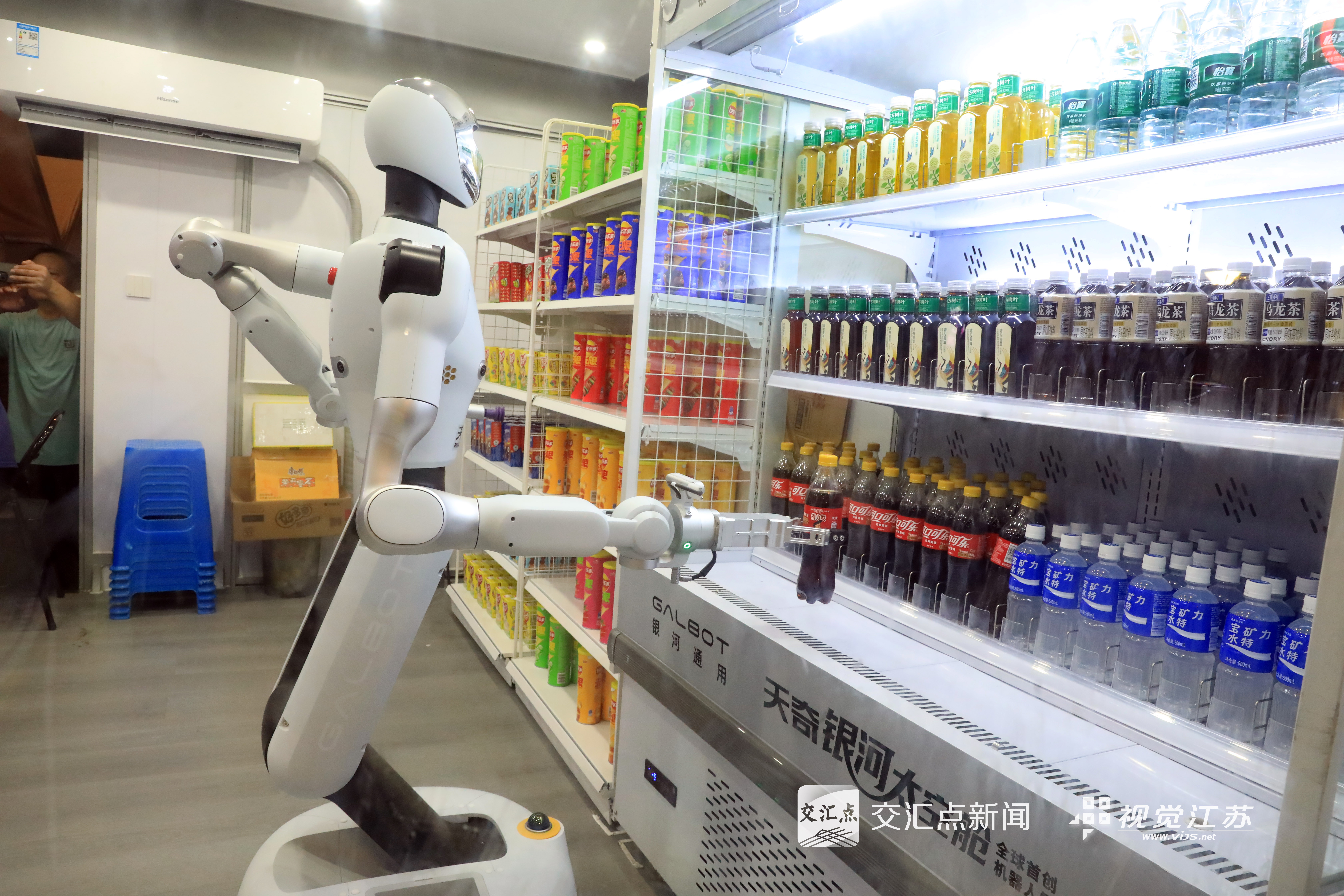 (特约摄影 丁焕新 26日20:10摄 09:09上线)9月27日晚上,江苏省城市足球联赛第十三轮无锡队对战南通队将在宜兴市体育中心举行。9月26日至28日,宜兴市再次举办苏超宜兴“陶淘市集”,“天奇银河太空舱机器人零售店”的出现吸引了许多顾客的目光,通过人形机器人售货,让“人工智能+”照进现实,融入市民生活。