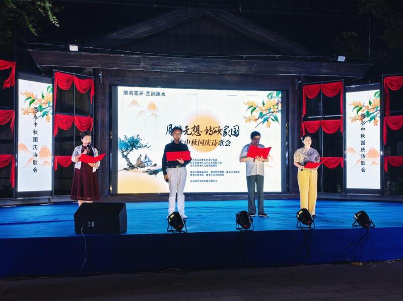 金桂飘香迎双节,诗乐飞扬颂家国。9月27日晚,由南京市溧水区委宣传部、区文联、区文旅局联合主办的“月满无想 诗颂家国”中秋国庆诗歌会在无想水镇举办。这场以“书香城韵,阅向未来”为主题的文化盛宴,融合诗词朗诵、原创作品分享、文化互动等形式,将传统节日与家国情怀深度融合,吸引了众多市民游客共赴诗意之约,营造出浓厚的节日氛围与阅读热潮。