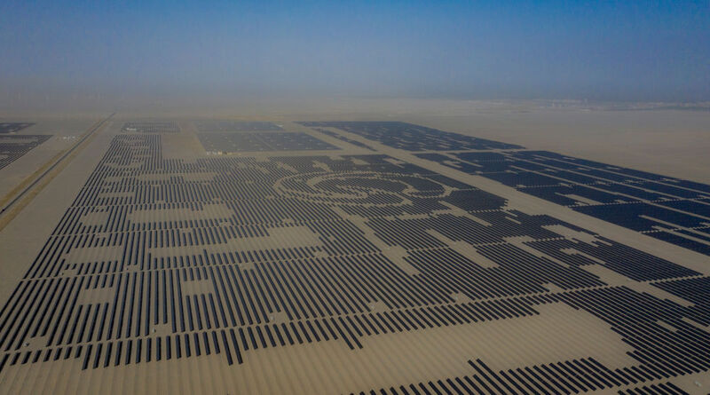 在新疆吐鲁番市鄯善县拍摄的1GW“光热+光伏”一体化项目(7月28日摄,无人机照片)。