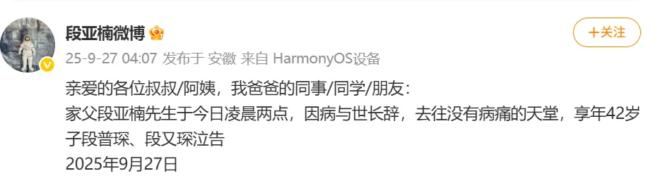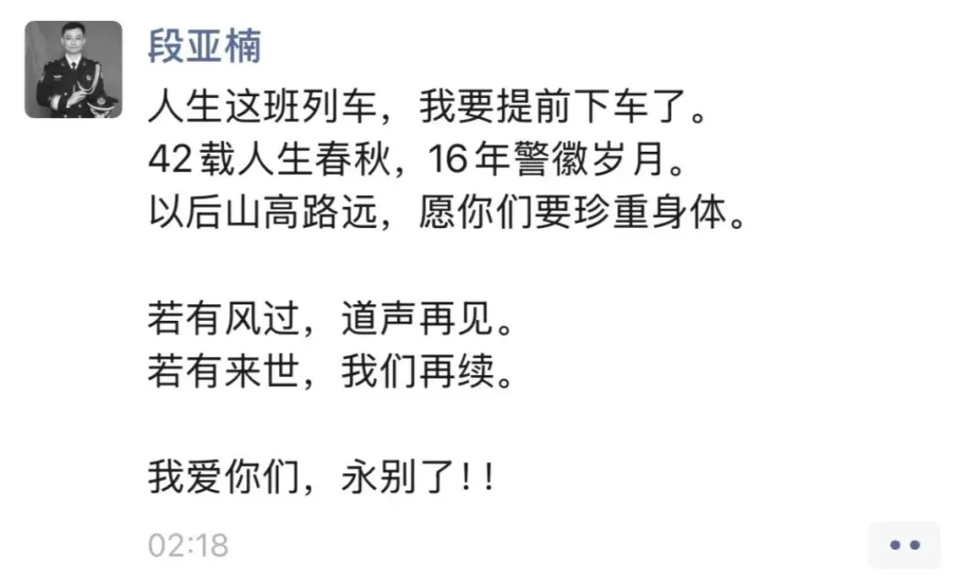 9月27日凌晨,安徽省亳州市公安局警察段亚楠的朋友圈突然发布一段文字: