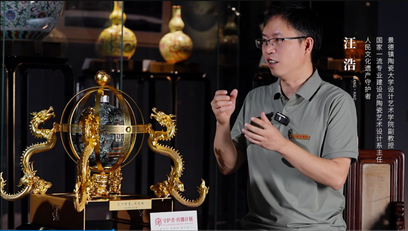 在拍摄现场,《守护者传播计划》栏目组见到了景德镇陶瓷大学设计艺术学院副教授汪浩。他深耕陶瓷艺术二十余年,是2024年央视春晚“春碗”的作者,作品曾走进联合国教科文组织总部,更斩获首届 “CHINA·中国陶瓷设计艺术展”金奖,也曾让浑天仪在一千九百年后重焕光辉。