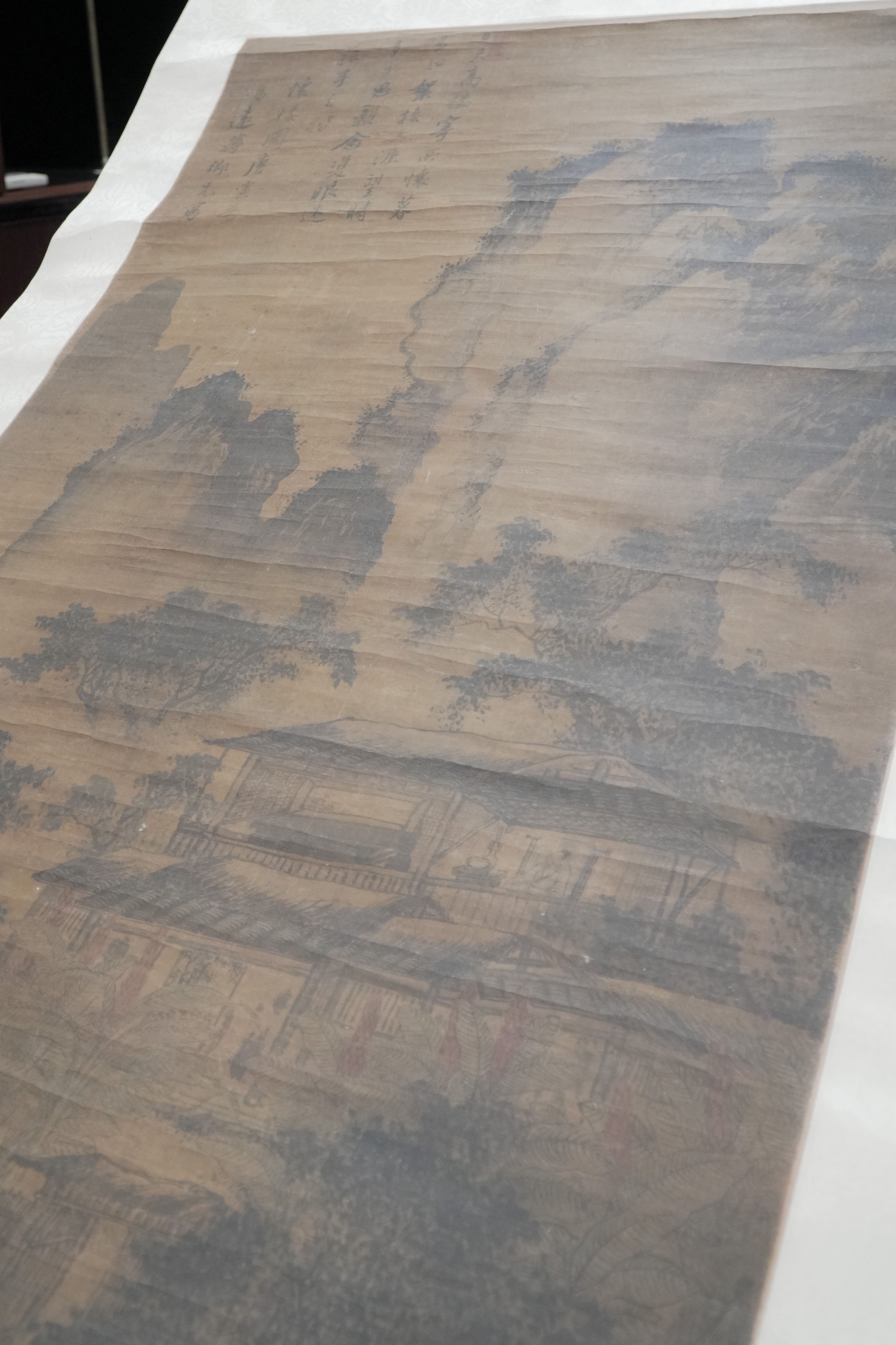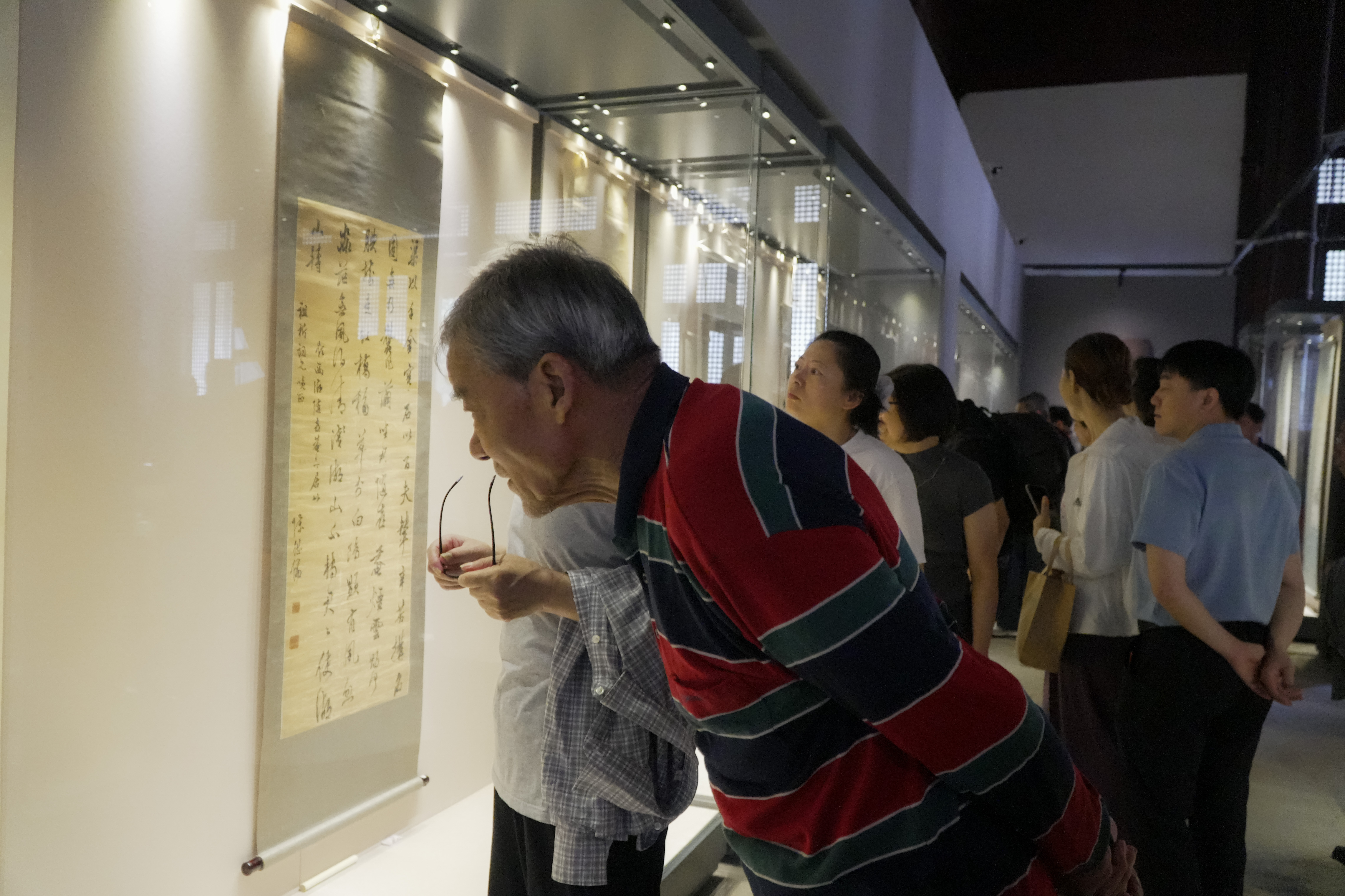 当天,书画展区还为观众呈现了书画艺术的多元风貌。其中不乏董其昌、陈继儒的书法,蓝瑛的山水,陈洪绶极具个性的人物画,以及刘墉等帖学名家的墨迹。尤为引人注目的是唐寅的《怀楼图轴》,这幅为同乡蒋鸣远创作的山水轴,以“百尺高楼寄所怀”的题诗传递浓浓乡愁,笔墨细腻工整,皴法灵活多变,是吴门画派的经典之作。此次还特别设置“扬州八怪”展区,郑板桥的兰石、李鱓的松树,这些作品以诗书画结合的方式,打破传统束缚,凸显的强烈个性表达与地域文化特征,成为清代艺术生态中一抹鲜活的亮色。