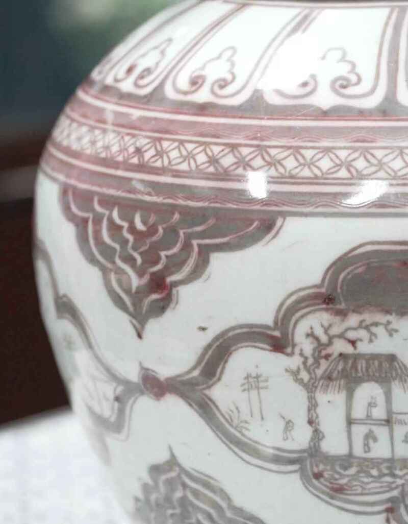 而让这件大罐跻身“存世孤品”行列的,还有其极高难度的釉里红烧造工艺。钱伟鹏解释道,釉里红以铜为呈色剂,而铜离子对窑火温度极为敏感。火候不足,釉色会呈黑红色或灰红色;火候稍过,铜离子便会挥发,从釉层中逸出,则呈现特有的飞红现象或干脆褪色,纹饰不连贯。这种“差之毫厘,谬以千里”的烧造特性,使得元代釉里红瓷器成品率极低、存世量极少。即便与现在声名赫赫的元代霁蓝釉白龙纹梅瓶相比,这件大罐的烧造难度也更胜一筹。