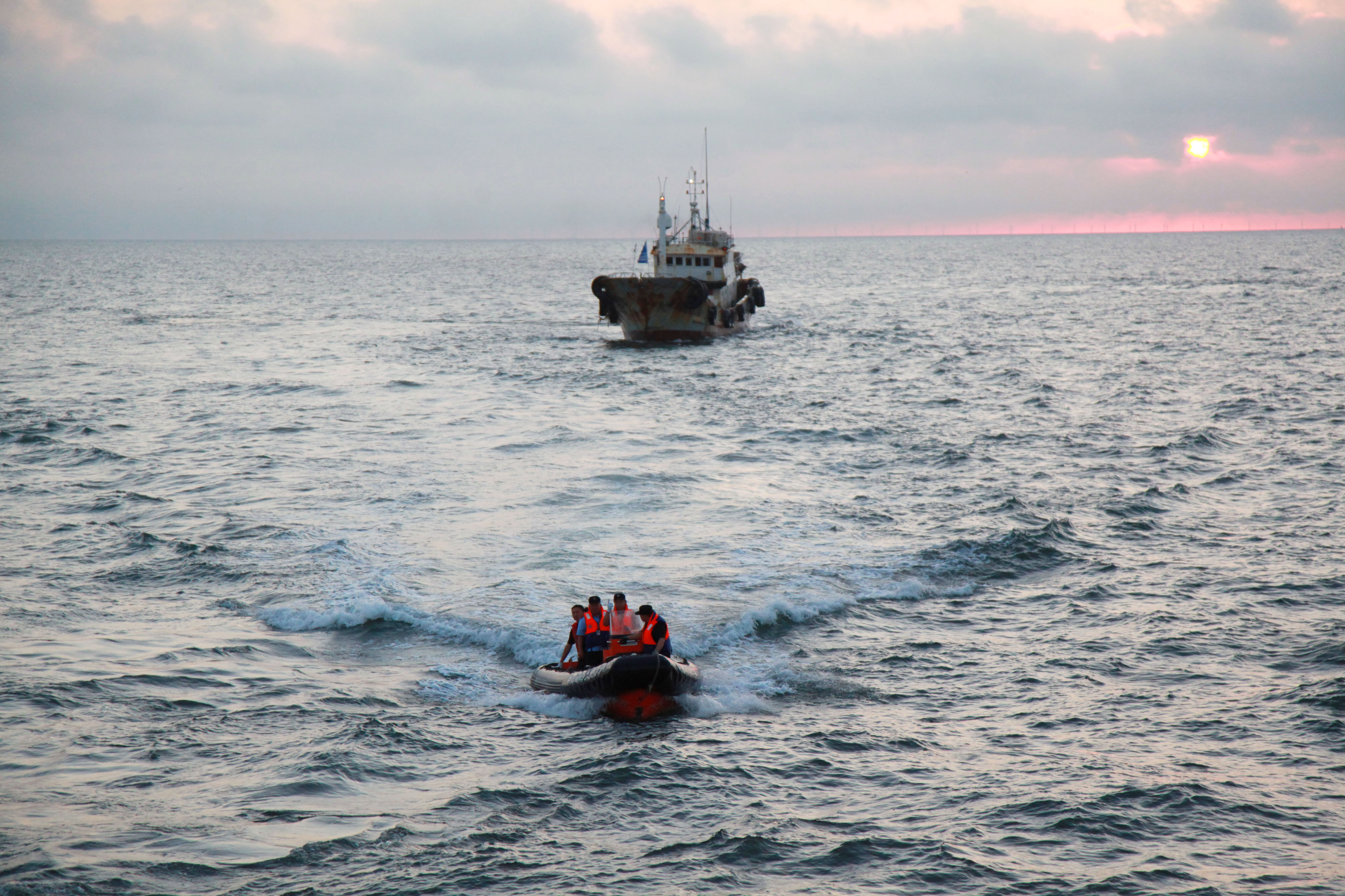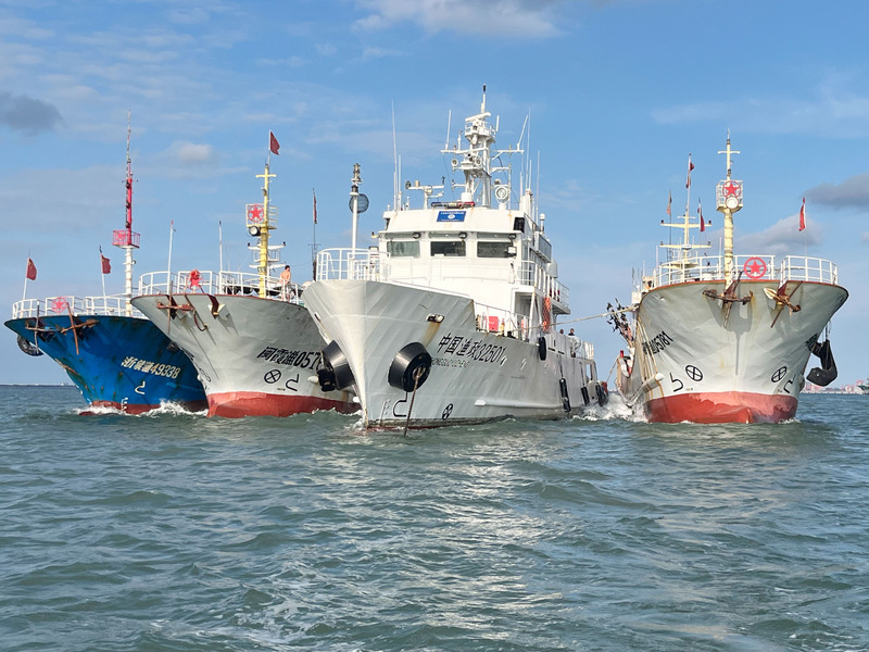 8月5日东海区刺网等4种作业类型渔船专项捕捞启动后,江苏迅速聚焦跨界捕捞整治。通过“苏渔安”系统实时监测发现,江苏以东海域短期内涌入大量外省籍违规渔船,最高峰时超2000艘。对此,江苏一方面第一时间向农业农村部报告情况,同时向相关省份通报渔船违规信息,商请协助召回;另一方面整合省、市、县三级执法力量,开展持续专项巡航,累计驱离违规渔船1800余艘次。针对9月1日黄渤海海域伏休开捕可能出现的北方籍渔船越界南下问题,江苏提前在北纬 35° 线部署6艘执法船开展24小时值守,构建“海上防线”,有效遏制越界捕捞苗头。