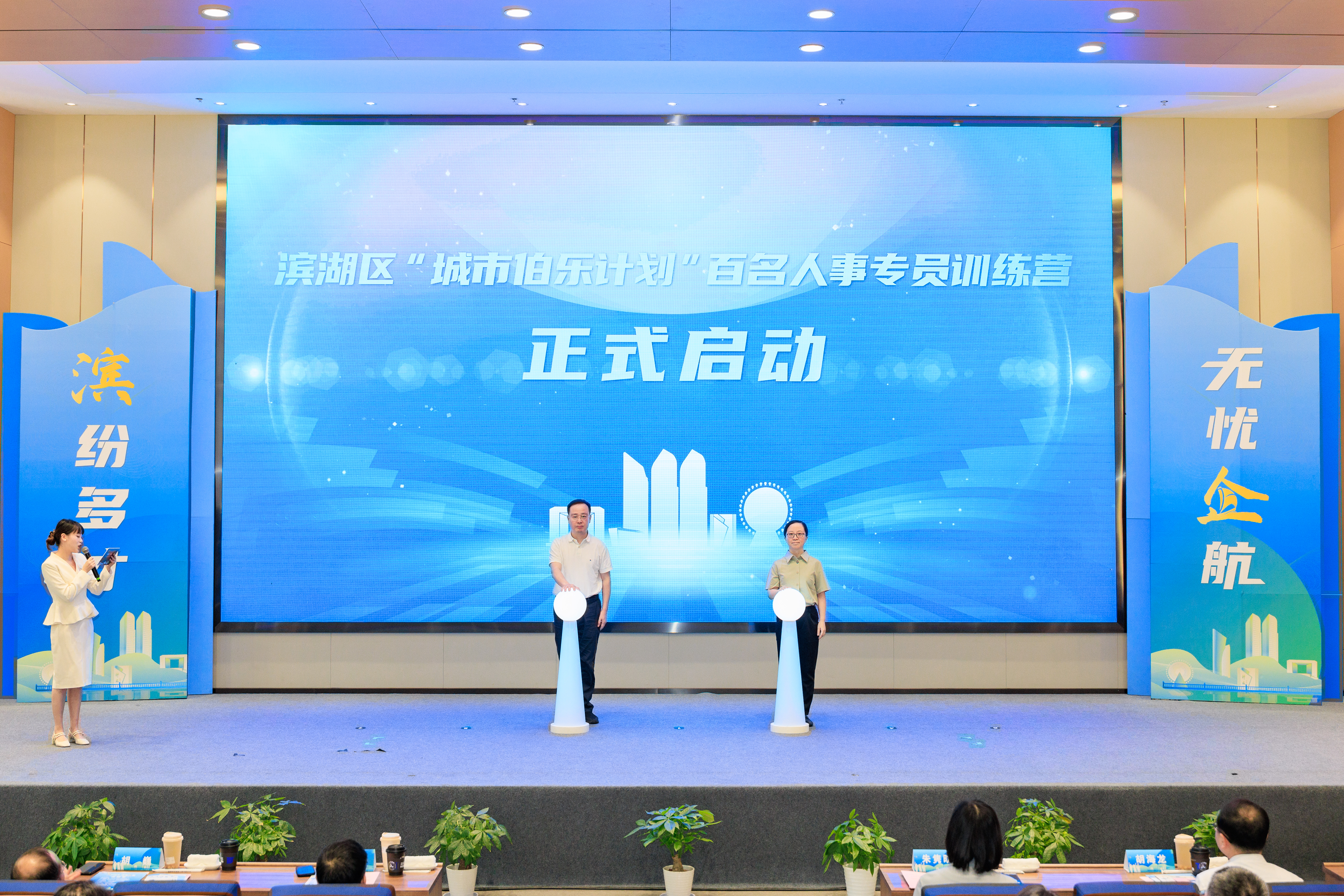 会上,滨湖区“城市伯乐计划”百名人事专员训练营正式启动,训练营将通过设置政策研习、专业学习、实战案例、跨界参访等多维度、全方位的系列课程,全面提升参训学员的人力资源管理专业水平,打造一支懂产业、通政策、精服务的HR精英队伍,助力企业更好地招引人才、留住人才、用好人才。