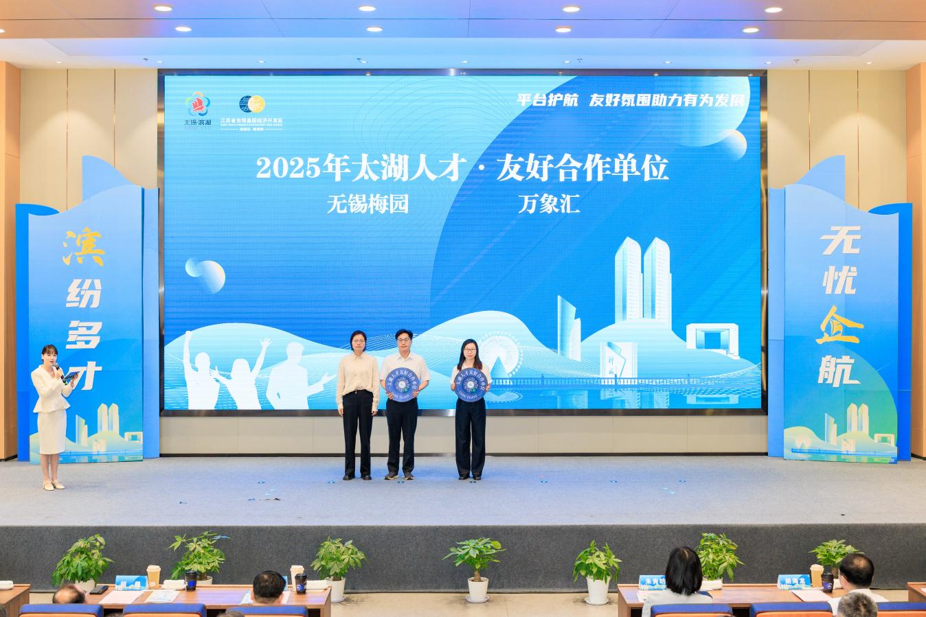 会上,无锡梅园、万象汇获得“2025年太湖人才·友好合作单位”授牌,无锡(国家)集成电路设计中心获得“2024年度优秀太湖人才·友好合作单位”证书。作为人才服务的重要阵地,“太湖人才·友好合作单位”不仅能为人才提供丰富的资源和服务,还营造良好的创新创业环境,让每一位人才在无锡事业有为、生活有光。