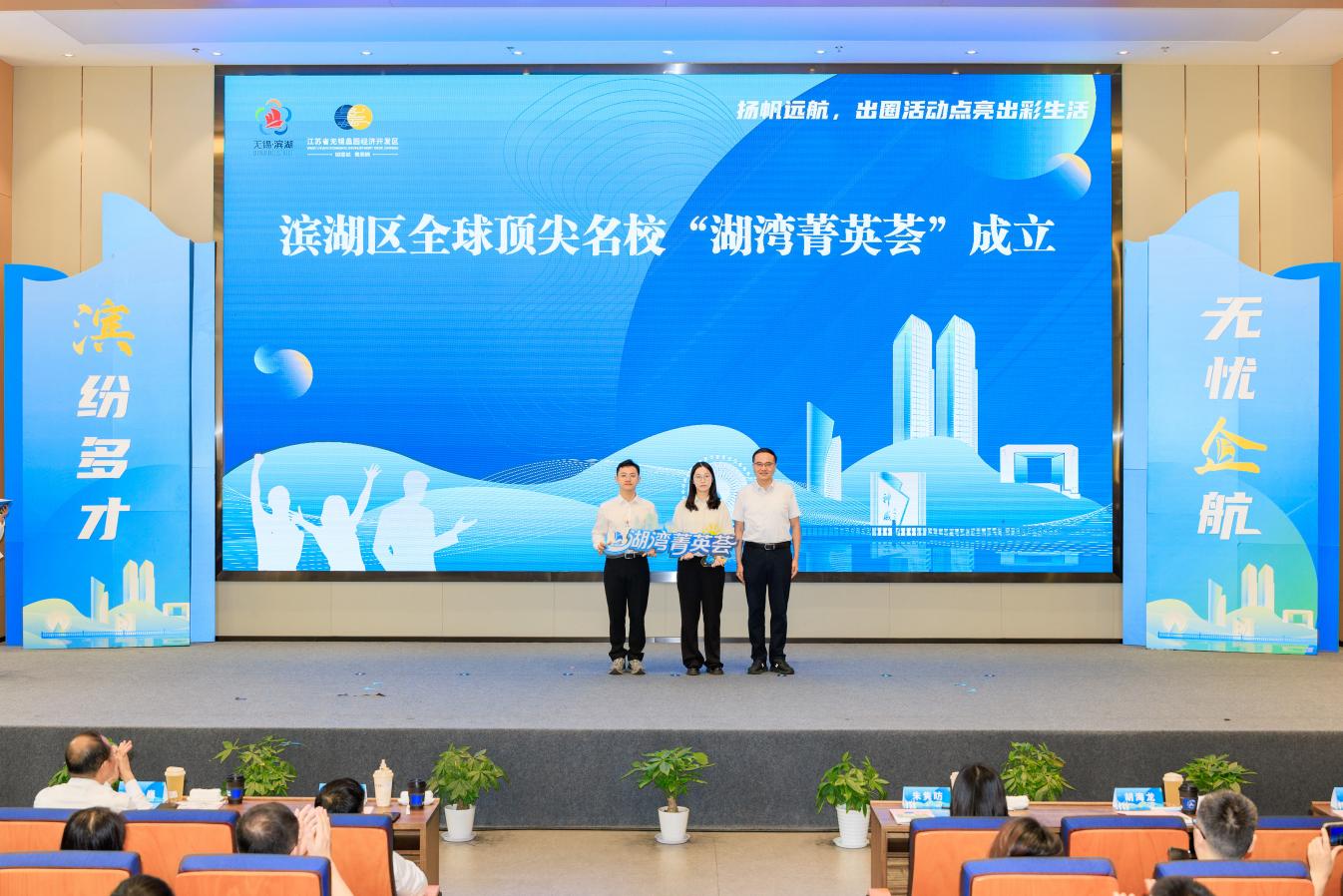 近年来,滨湖区不断加大名校毕业生的引进力度,通过实施“Young帆计划”,累计招引剑桥、帝国理工、清华、北大等全球百强名校大学生超百人,其中硕博学历占比超90%。会上,滨湖区全球顶尖名校“湖湾菁英荟”宣布成立。未来,该组织将作为以才引才、推介滨湖的重要抓手,定期开展青年人才互动交流活动,增强人才留在滨湖的“黏度”。