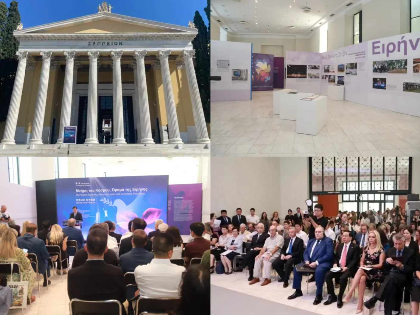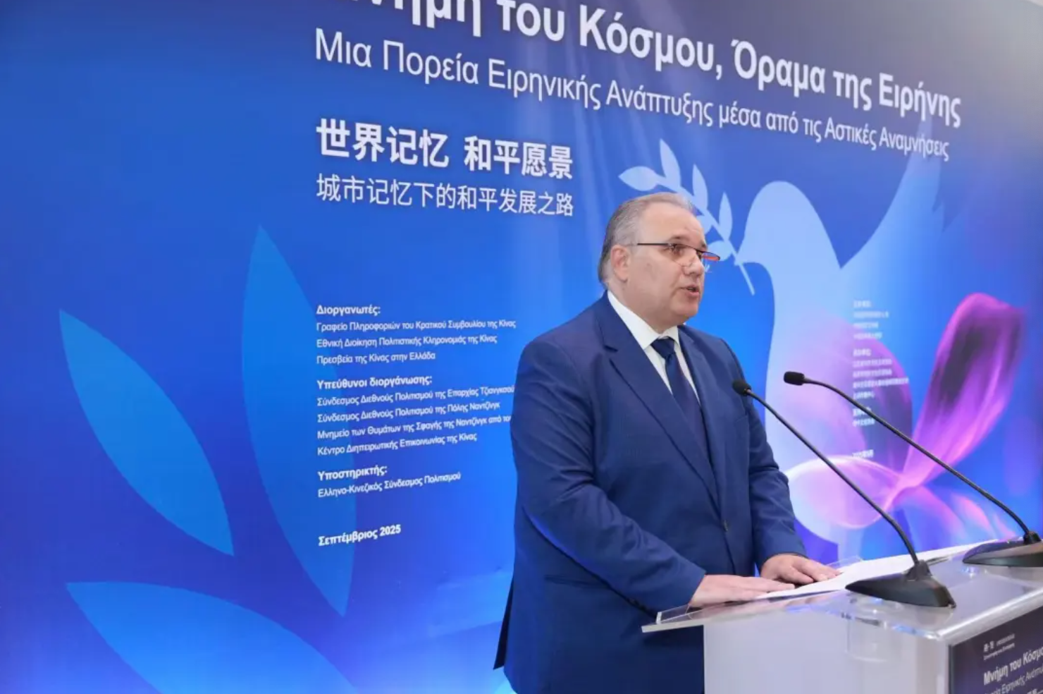 爱琴海畔,文明交响。当地时间9月25日,《世界记忆 和平愿景——城市记忆下的和平发展之路》展览在希腊雅典扎皮翁宫开幕。当橄榄枝的绿意映照在展馆的玻璃幕墙上,中国南京与希腊雅典两座古城的历史记忆与和平祈愿,在此刻交织共鸣。