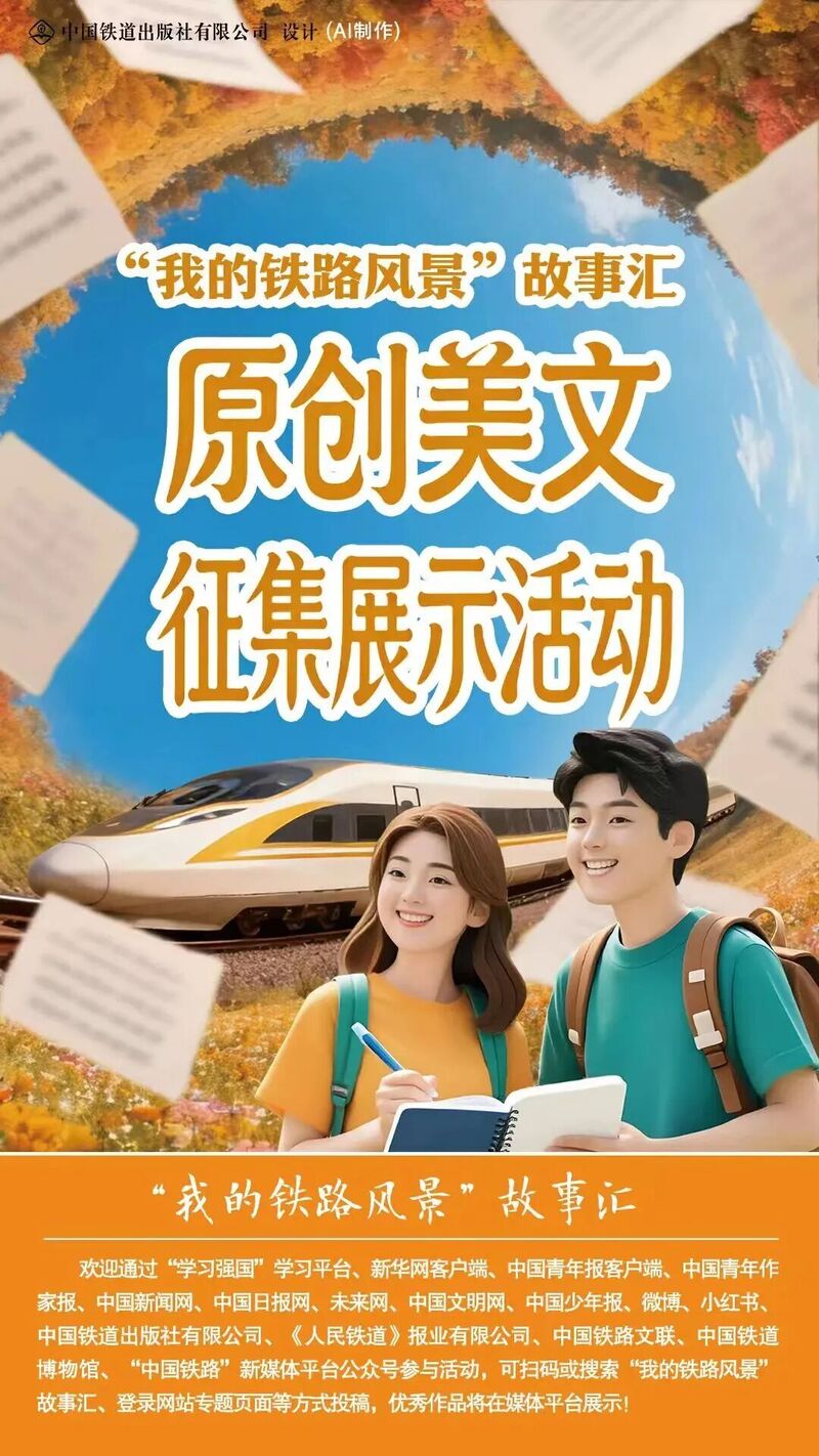 铁路故事,笔下生花。万里铁道上,“我的铁路风景”故事汇原创美文征集展示活动正式开启。这场以铁路为魂的文化活动自9月25日起至11月底,面向广大网友、旅客公开征集散文、小说、诗歌、博文等文字类原创作品,更多反映新时代的中国故事和中国铁路故事将带给大家别样的惊喜与感动。