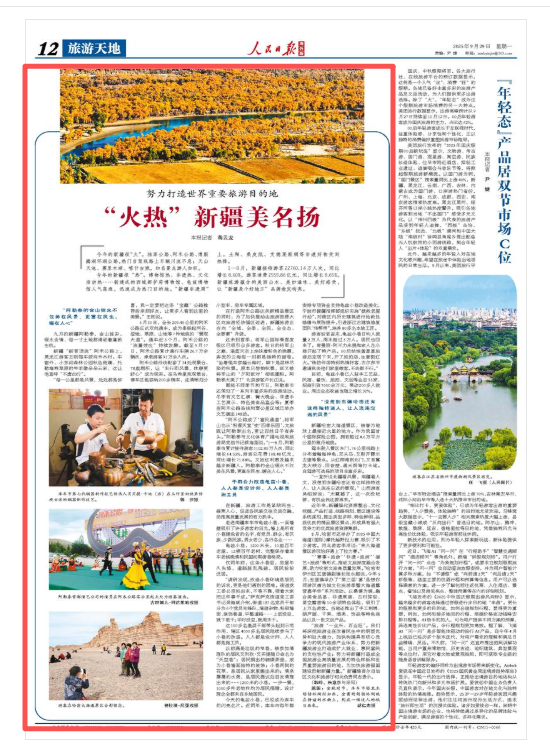 “旅游‘一业兴、百业旺’。我们将深挖旅游业在改善民生中的明显优势和巨大潜力,加快构建具有核心竞争力的现代旅游产业体系,努力把新疆旅游业打造成扩大就业、惠民富民的支柱性产业;努力将新疆打造成全国旅游业高质量发展的特色样板和世界重要旅游目的地,为加快旅游强国建设贡献新疆力量。”新疆维吾尔自治区文化和旅游厅相关负责同志表示。