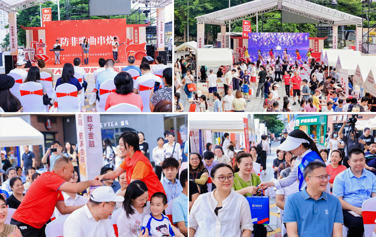 为了让金融知识普及更生动、更有趣,活动现场为投资者奉献了一台别开生面的文艺演出,专业演员和投教基地的小伙伴们将防非反诈知识巧妙地融入到乐器演奏、民族舞蹈、诗朗诵、歌曲串烧、相声、脱口秀等丰富多彩的节目中,为投资者和现场群众带来了一场视听盛宴。