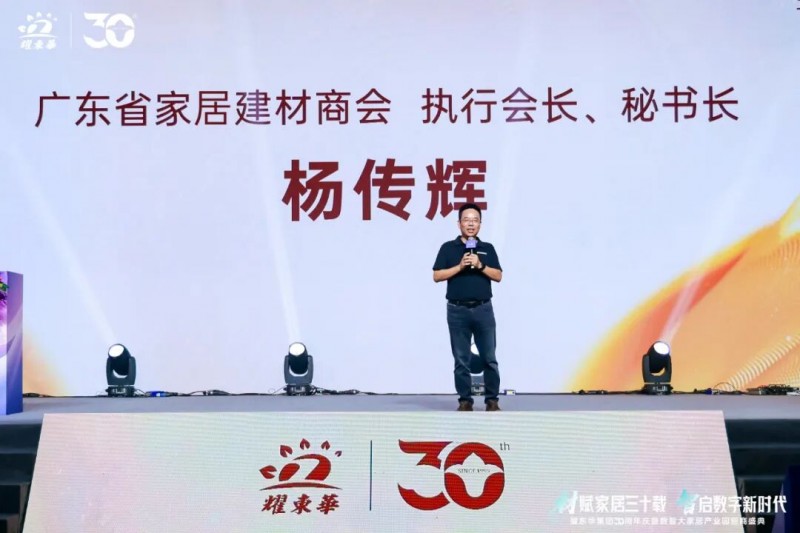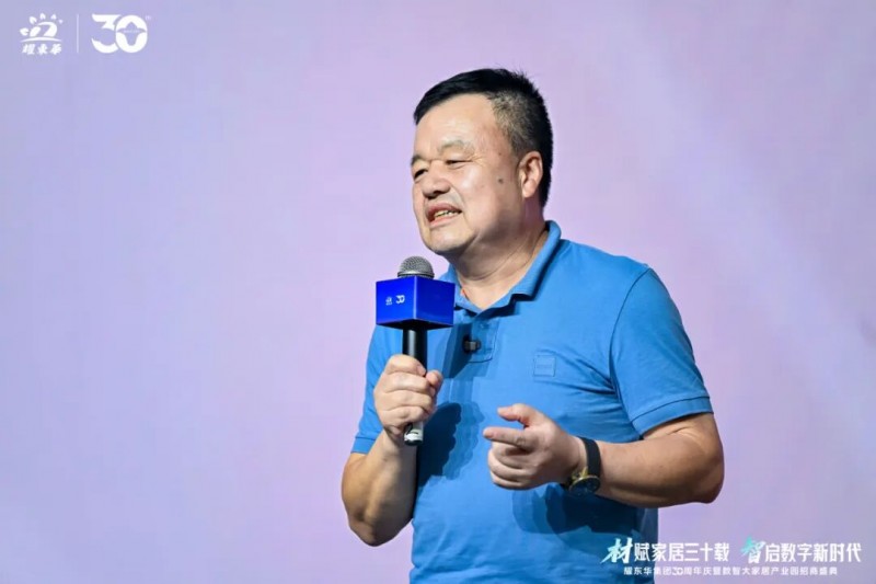 随后,广东省家具商会会长、朗生整装科技董事长凌开舟先生上台致辞,并高度评价了耀东华三十年来对家具产业创新发展作出的重要贡献。